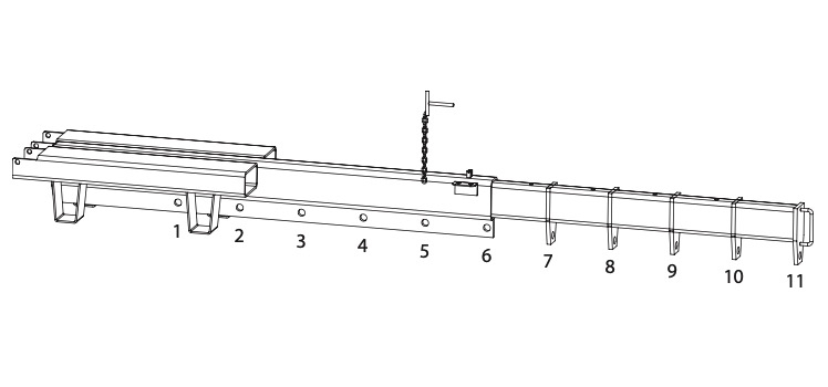 Brat de macara telescopic manual, montabil pe furcile stivuitorului, proiectat pentru operatiuni de ridicare a sarcinilor grele la distante variabile fata de catarg. Configuratia telescopica permite 11 pozitii diferite ale carligelor de ridicare, cu reglaj din 250 in 250 mm, oferind flexibilitate ridicata in utilizare.